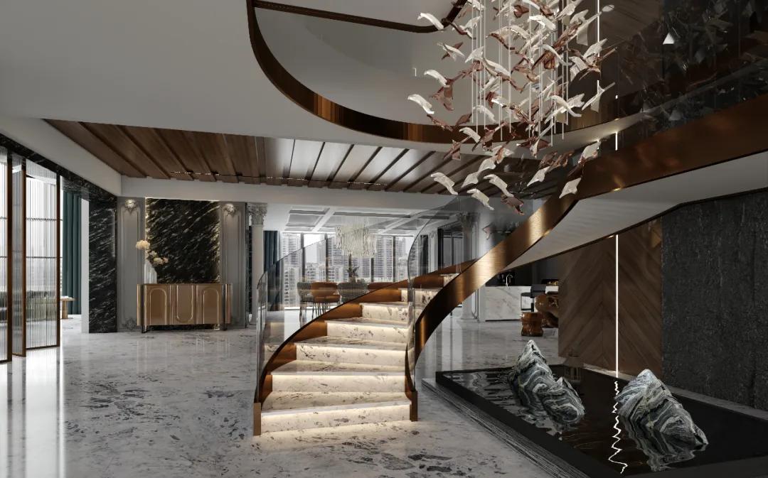 其细腻的纹理在无主灯设计的光影下若隐若现,为空间注入灵动的生命感。