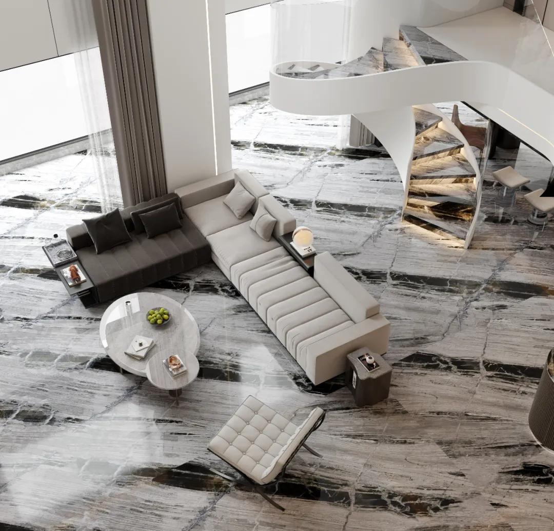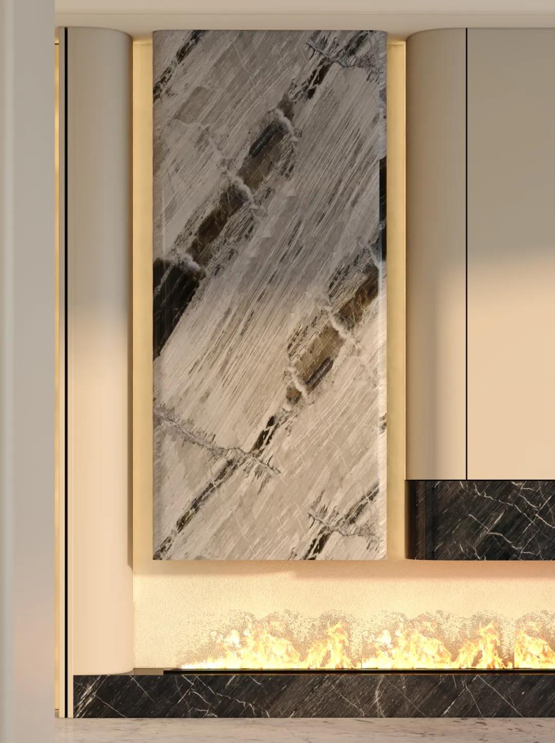 即便是轻奢风格,它也能与金属、玻璃等材质碰撞出独特火花,青灰的内敛中和奢华的张扬,让空间质感更显高级。