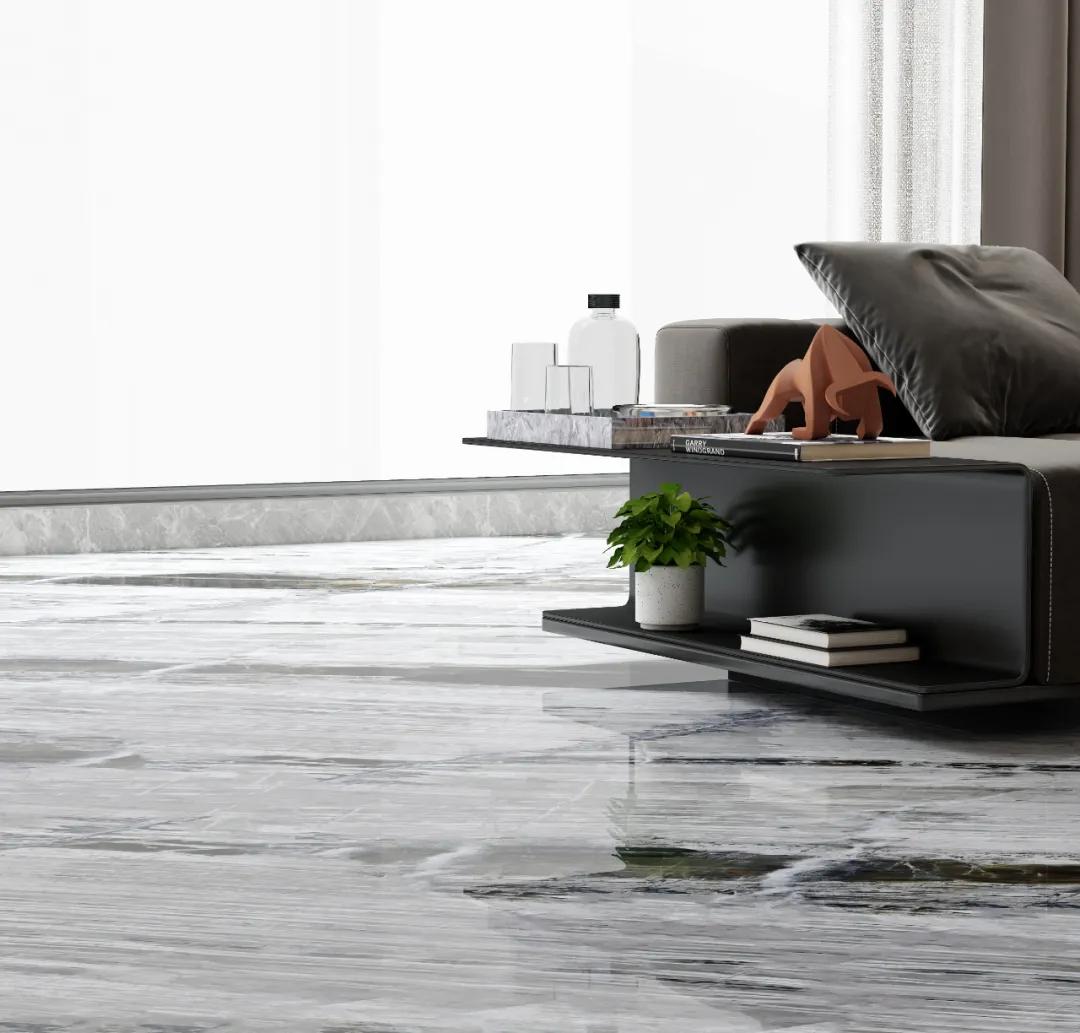 搭配新中式风格时,青灰底色呼应木作的温润,线条纹理暗合中式留白美学。