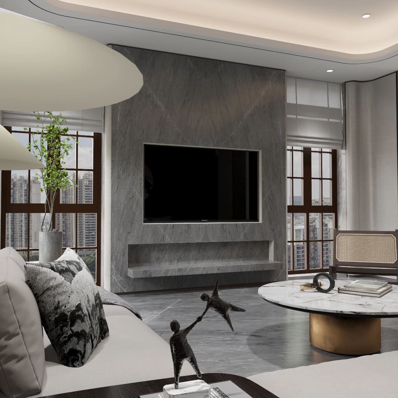 In a modernist style, the clean lines and neutral tones of Macallan Gray complement smooth surfaces and carefully selected furniture, creating an ultra-modern space.