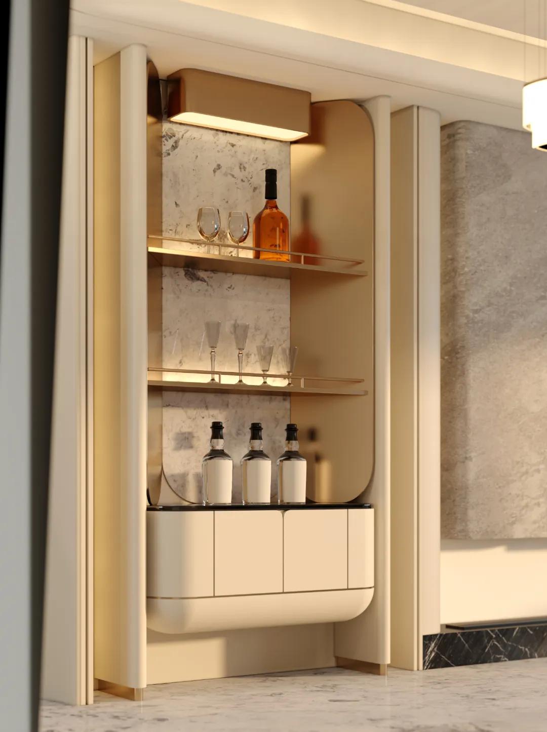 其细腻的纹理在无主灯设计的光影下若隐若现,为空间注入灵动的生命感。