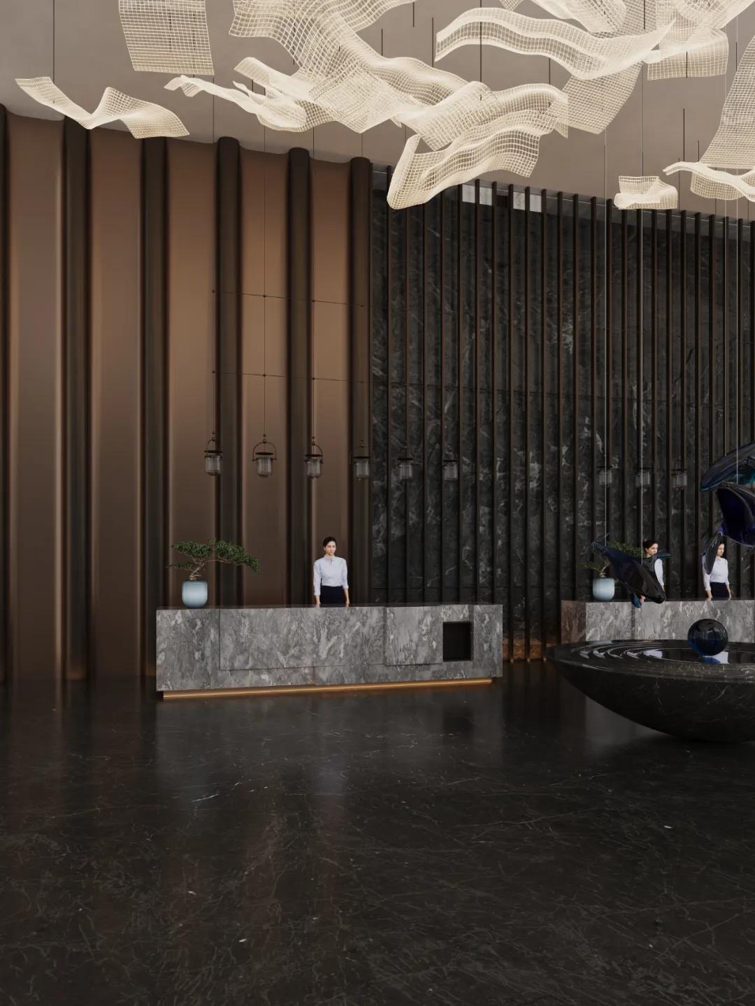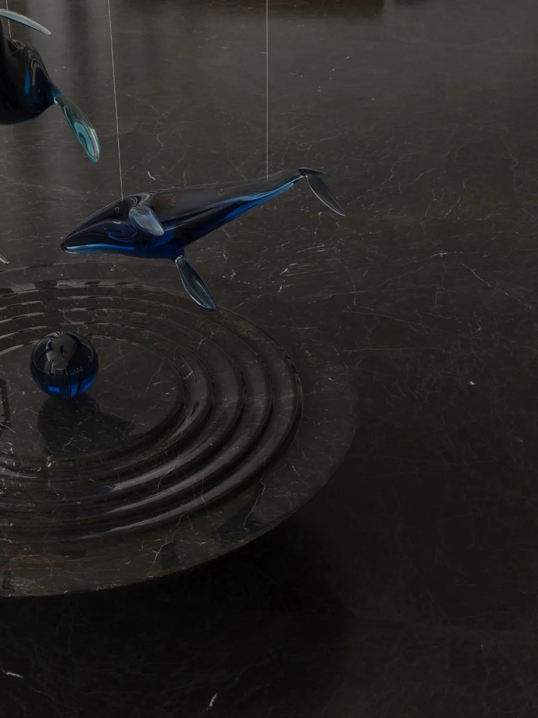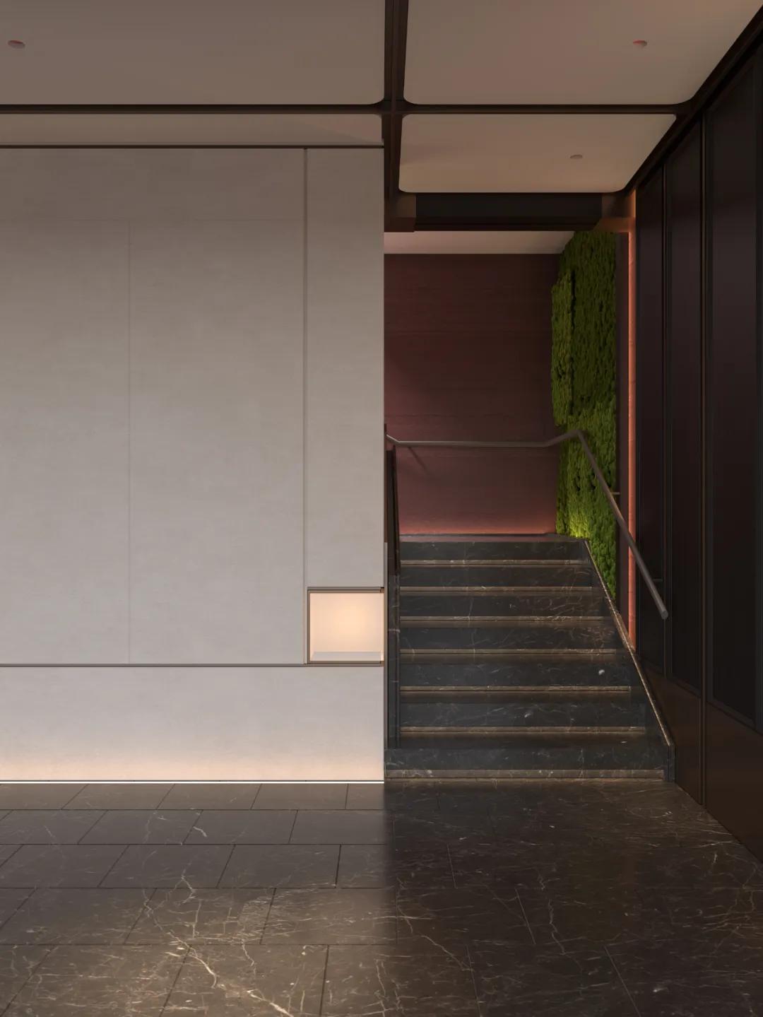 在光线照耀下,自然纹理呈梯度形成丰富视觉层次感,与其他材质形成微妙呼应,为空间增添立体感和神秘感。
