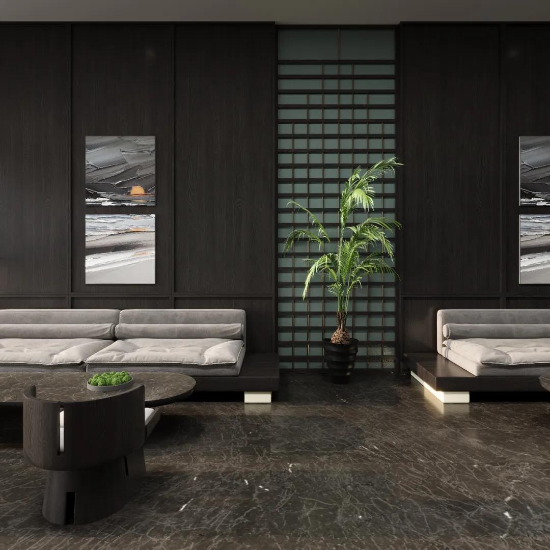融合深沉黑与温暖灰,再将白色肆意挥毫泼墨,以点或线的形状勾勒出现代艺术氛围。