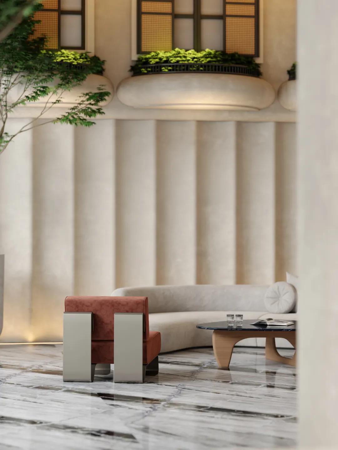 在米白基底上勾勒“一”字型韵律,暗合东方“居和”之道,却又不失西方审美追求的秩序。