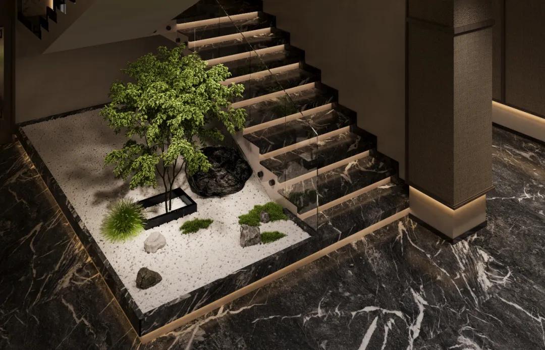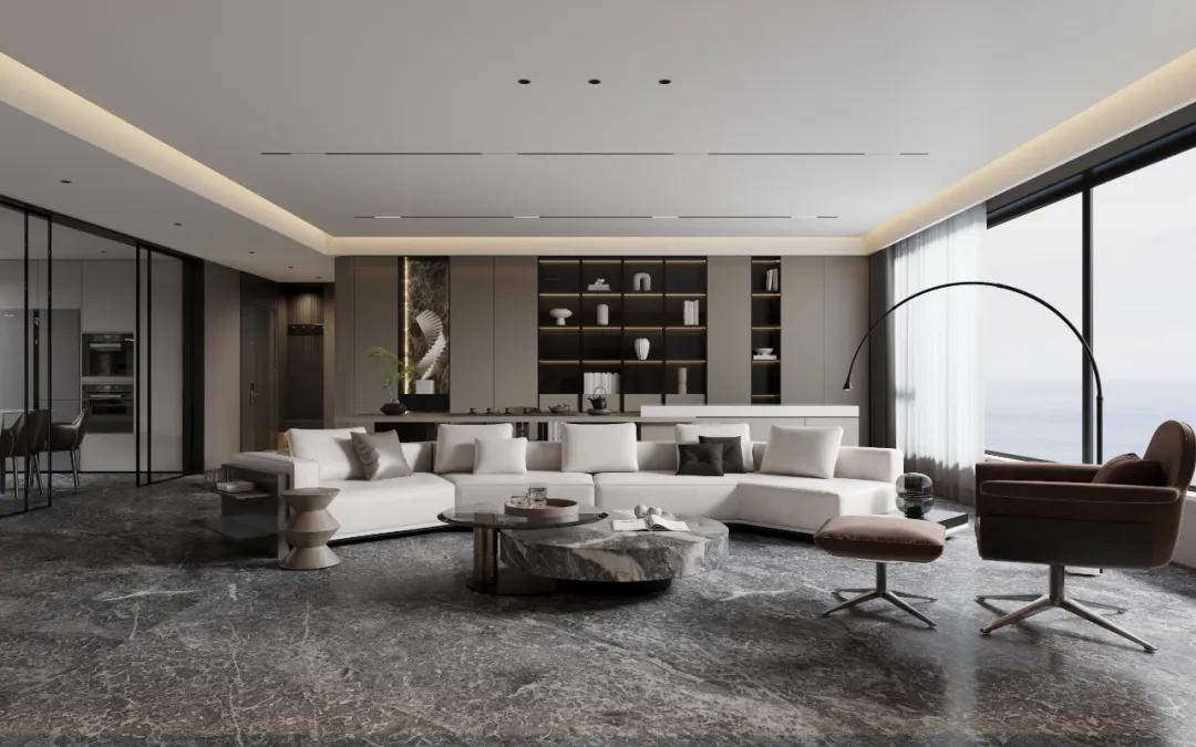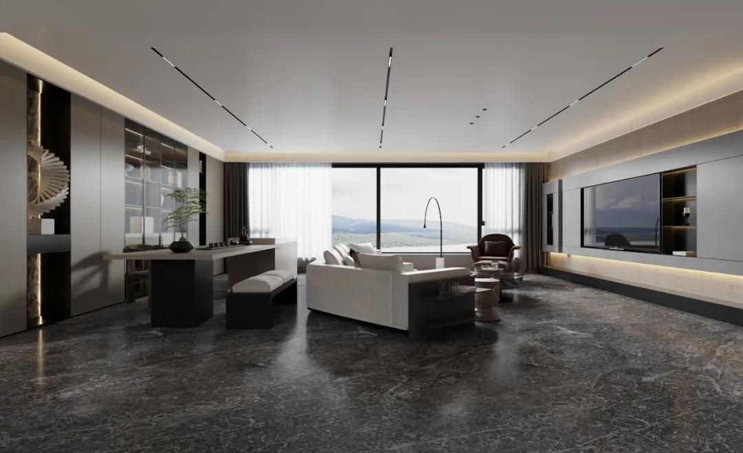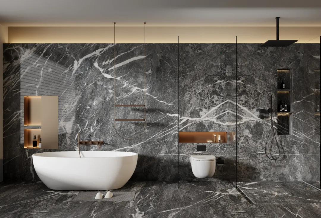 在浅色或暖色调为主的环境中,使用铅笔灰大理石可以提供鲜明的对比,增加空间的深度和层次感。