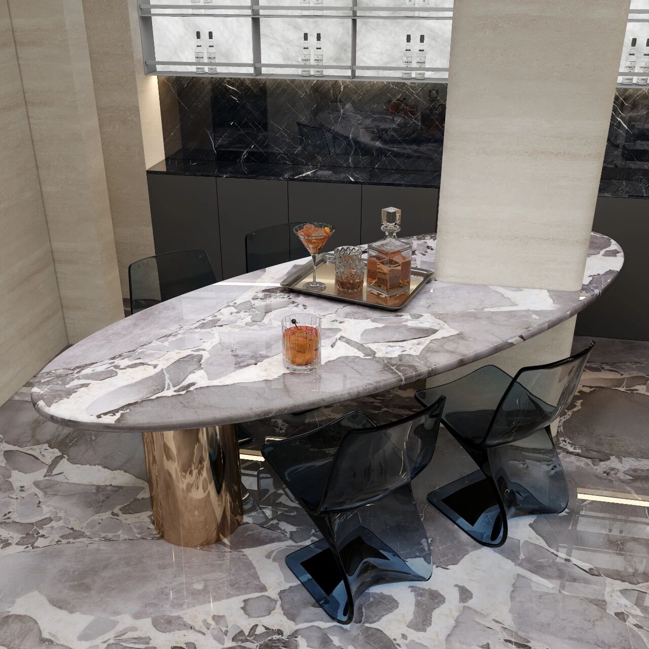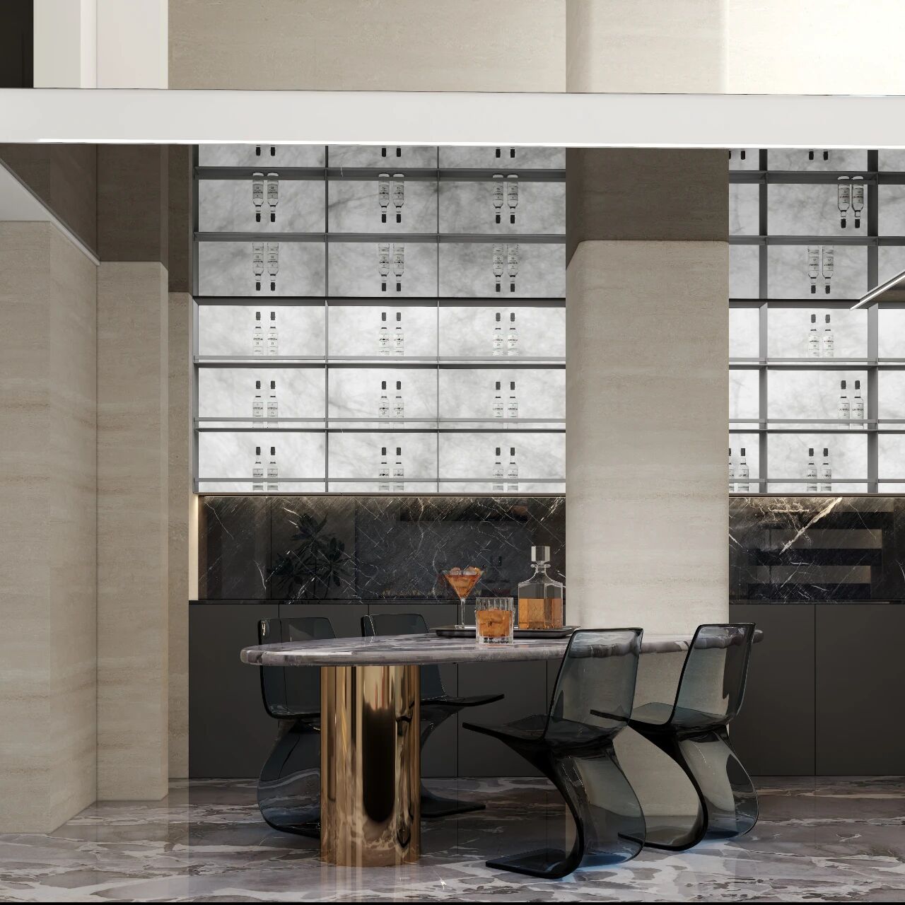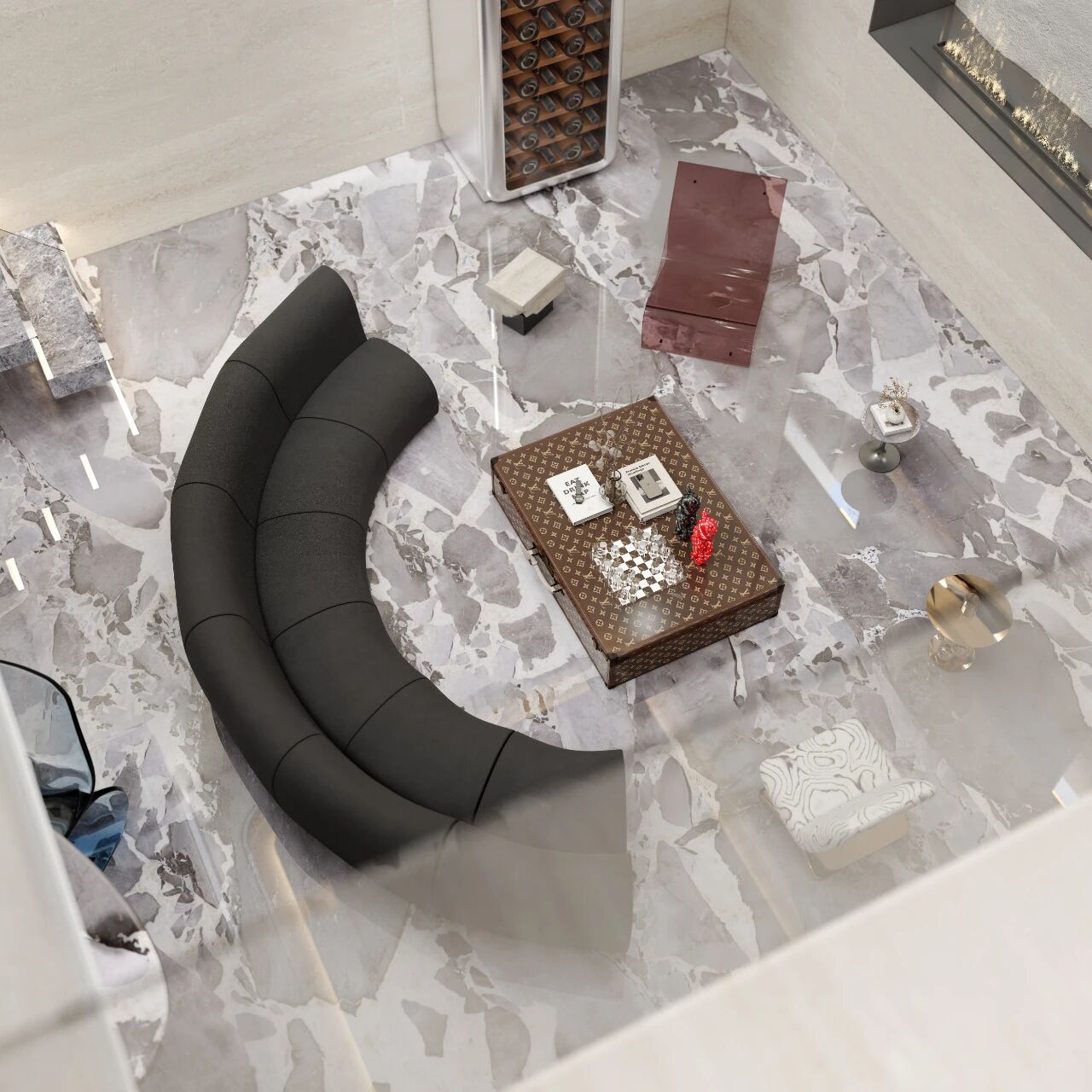 The brushstrokes of time paint the legend of geological eras upon a gray canvas. Santoro uses shades ranging from light to medium gray as its base, evoking ancient rocks gently caressed by the sea breeze—warm and richly textured.