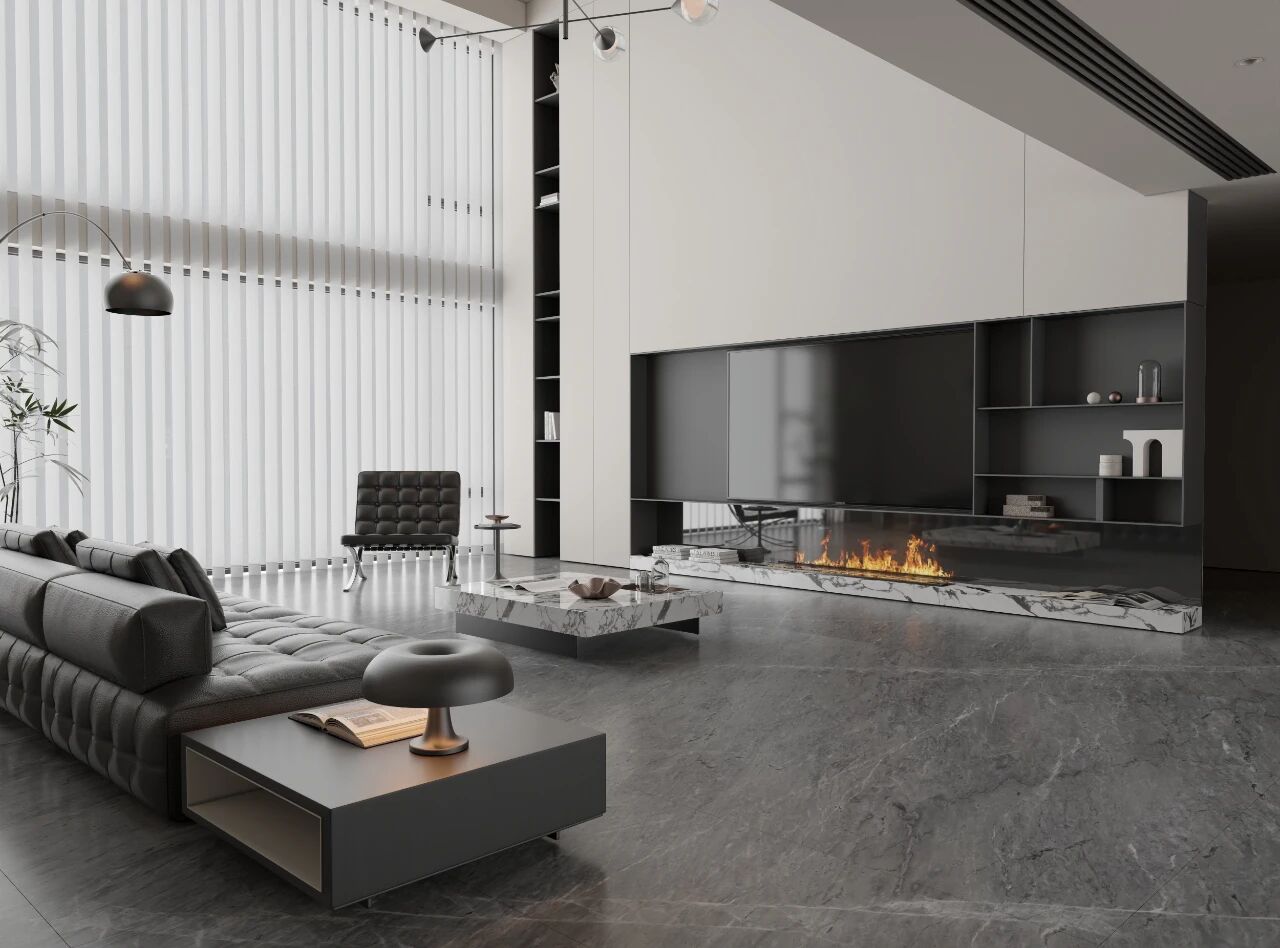 In a modernist style, the clean lines and neutral tones of Macallan Gray complement smooth surfaces and carefully selected furniture, creating an ultra-modern space.